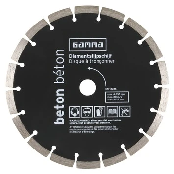De Gamma diamantslijpschijf met diameter 230mm is uitermate geschikt voor het slijpen van beton. De diamantslijpschijf is geschikt voor een haakse slijper.