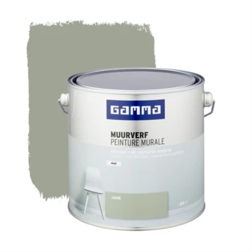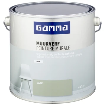 De GAMMA muurverf voor binnenshuis is geschikt voor het schilderen van muren en plafonds. De GAMMA muurverf jade 2,5 L is een geur arme watergedragen muurverf. Het blik heeft een inhoud van 2,5 liter, dit is voldoende voor een oppervlakte van ongeveer 20 m². Twee uur na het aanbrengen van de verf is deze reeds stofdroog, na 6 uur kan je de volgende laag aanbrengen. De beste temperatuur om met deze verf te werken is tussen de 8 en 25°C. Met zijn uitstekende dekking is de verf zeer geschikt als afwerklaag op verschillende ondergronden, waaronder cement- en pleisterwerk, gipsplaat, glasweefsel, beton en behang.