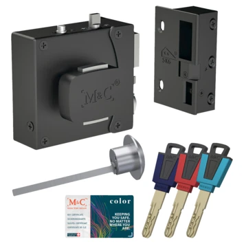 Het oplegslot is voorzien van het keurmerk van SKG** (Stichting Kwaliteit Gevelbouw). Het SKG keurmerk geeft aan dat het slot zwaar inbraakwerend is. De cilinder is SKG***