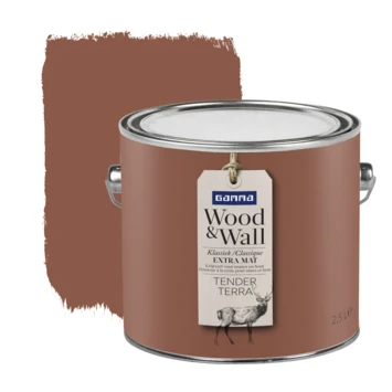 GAMMA Wood&Wall Klassiek Extra Mat in de kleur tender terra 2,5 liter is een zeer matte krijtverf met een verfijnde uitstraling en een geheel eigen effect. Het poedermatte effect komt tot in de kleinste detail tot zijn recht. GAMMA Wood&Wall geeft je huis de cottagesfeer van de Engelse countryside.